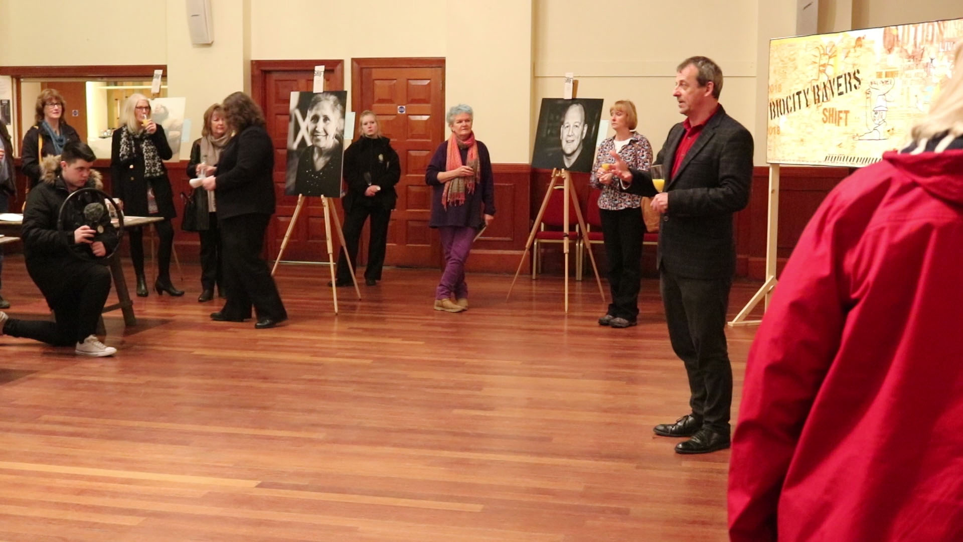 Two students from HND Television (Jack Carey & John Pittendreigh) and one student from HNC Sound Production (Pamela Arnachellum) went out to film at the “Shift” Exhibition on Tuesday evening at Cumbernauld Town Hall. The exhibition included portrait photography by John Farnan and a collaborative, community art project led by artist Alan Greive. HNDTV student Scott Fraser was also on hand to film his own documentary on the student’s involvement with the Shift project.